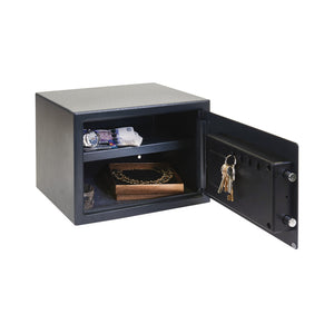De Chubbsafes Air 15 EL biedt een veilige opbergplaats voor je documenten en kostbaarheden. Met een betrouwbaar elektronisch slot (inclusief batterijen) en een stevige vergrendeling aan één zijde blijven jouw bezittingen beschermd. De binnenkant is voorzien van een zachte bekleding om krassen te voorkomen, en handige haken aan de deur maken het eenvoudig om kleinere items op te bergen. Dankzij de meegeleverde verankeringsmaterialen bevestig je de kluis stevig aan de bodem of achterwand. Het strakke design in antracietgrijs (RAL 7016) past perfect in elk interieur.