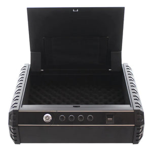 Berg je wapens en waardevolle spullen veilig en snel toegankelijk op in de Rottner Gunmaster XL. Deze pistoolkluis is voorzien van een geavanceerde biometrische vingerafdrukscanner, waarmee je in een fractie van een seconde toegang krijgt. Er kunnen tot wel 20 vingerafdrukken worden opgeslagen, handig voor meerdere gebruikers of verschillende vingers. Dankzij de stevige stalen constructie en het verborgen scharnier is de kluis goed bestand tegen inbraakpogingen. Naast pistolen is er ook ruimte voor paspoorten, contant geld, sieraden of kleine elektronica. De binnenzijde is zacht bekleed en het compartiment is met fleece afgewerkt om je eigendommen te beschermen tegen krassen. Geen stroom? Geen probleem – je opent de kluis altijd met de meegeleverde noodsleutels. Voor extra zekerheid monteer je de Gunmaster XL stevig aan de vloer met de inbegrepen bevestigingsset.